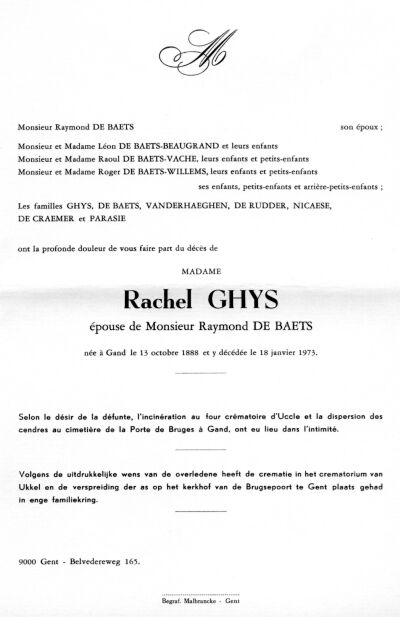 dochter Danielle Jeanne Rachel, geboren te Gent 31.12.1948 en gehuwd te