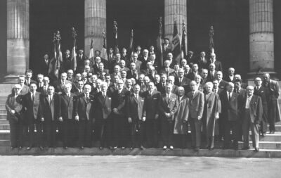 Bijeenkomst van Oudstrijders te Gent in de aula van de Universiteit.