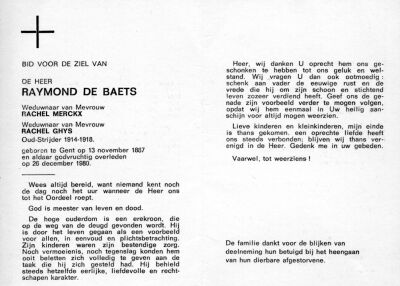 Raymond De Baets overlijdt op de gezegende leeftijd van 93-jaar op 26 december