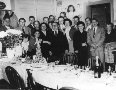 communie van zijn jongste dochter Anne-Marie. Van links naar rechts : gehurkt